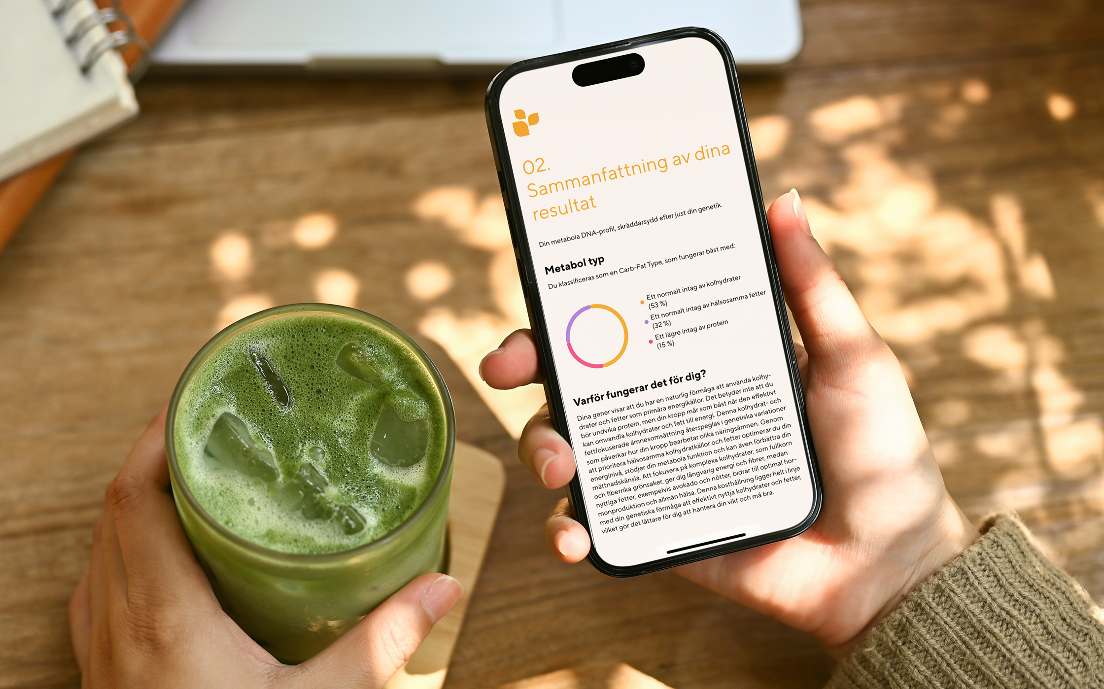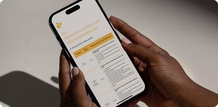 Dina resultat visar hur din kropp omsätter makronäringsämnen, vilken kost som passar dig bäst och om du har några riskfaktorer du bör vara vaksam på.